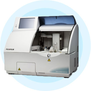 The patient input is intuitive via the clearly structured control box of Fuji DRI-CHEM IMMUNO AU10V. The analyzer performs the measurement automatically and required for a test only 100µL serum or lithium heparin plasma. Upon completion of the analysis, the results are automatically transmitted to the laboratory computer.